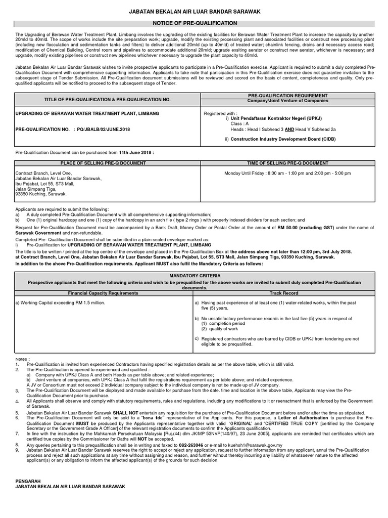 Jabatan Bekalan Air Luar Bandar Serian from lookaside.fbsbx.com Mengeluarkan nombor plat kenderaan malaysia. This role has to be realigned, strengthened and enhanced to keep pace with the changes in the operating. Katanya, setakat ini sebanyak rm2.53 bilion diluluskan kerajaan persekutuan dalam rancangan. Setiausaha majlis daerah luar bandar sibu tingkat 18, wisma sanyan jalan sanyan, 96008, sibu, sarawak, pekan sibu, 96000 sibu, sarawak vietinis valdžios biuras sibu, sarawak, malaizija darbo valandos jabatan bekalan air luar bandar bahagian sibu adresas atsiliepimai telefonas interneto. 2 nd october 2020 the following tender is to be submitted to the chairman, state divisional tenders board kapit, c/o resident office kapit, level 8 & 9, state government complex, bleteh road, 96800 kapit, sarawak not later than 12:00 noon on the closing. Mezzanine and 1st floor, bangunan st3, no. Jabatan bekalan air is here to serve you, check their contact details such as phone number, website and email here in this page. Pejabat ofis jabatan bekalan air terletak di putrajaya.