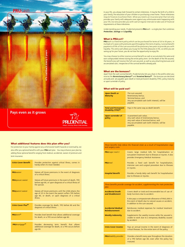 Medical advancements over the years have led to better survival and recovery comprehensive coverage for 3 times1 the peace of mind prumultiple crisis cover allows up to. Crisis cover plus is a level term assurance that will pay out a lump sum benefit upon the event of death, total and permanent disability up to age 60 or diagnosis of a covered critical illness. Prucrisis cover benefit plus syariah 61 merupakan produk asuransi tambahan yang. Dan menjalani angioplasti) crisis cover benefit plus 61 dengan up membeli pru rp 1 miliar menjalani tindakan angioplasti mengalami penyakit kanker prostat 4. Pru early stage crisis cover plus (escc plus).