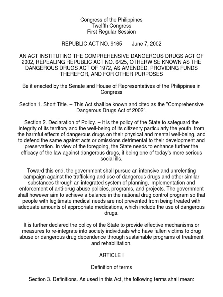 Related : Dangerous Drug Act Malaysia : RA9165 Dangerous Drugs Act 2002 | Narcotic | Cannabis - & drug dependants (treatment and rehabilitation) act 1983 (act 283) & regulations & rules :.